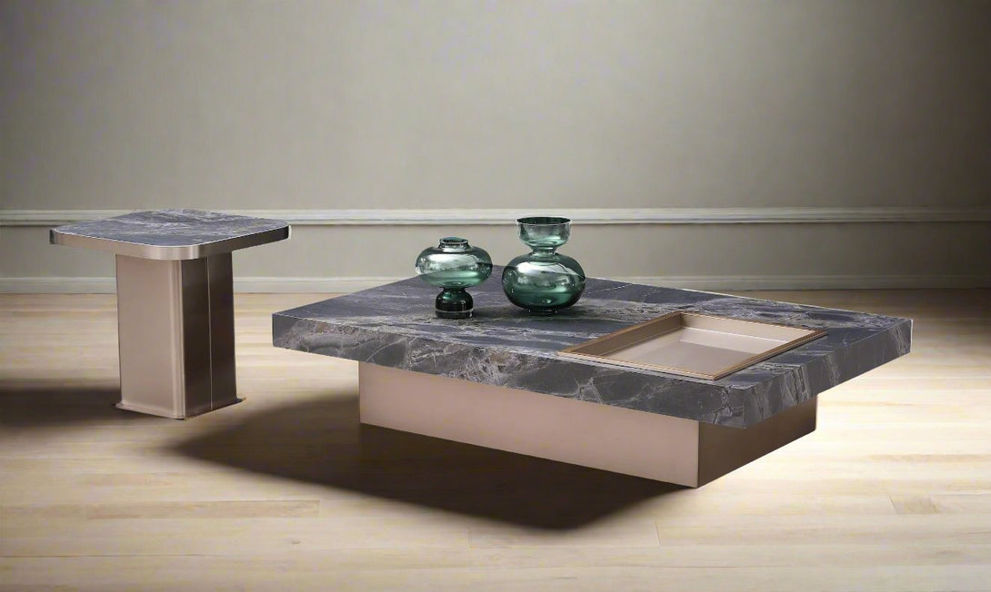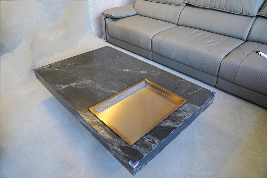 Black Gold Rectangular Marble Coffee Table draws inspiration from the raw elegance of natural stone. Featuring a polished black marble top with subtle golden veining, paired with a brass-toned built-in tray, this piece adds understated luxury to your living space. The spacious surface and solid base embody a modern, grounded aesthetic — perfect for contemporary homes seeking refined minimalism.