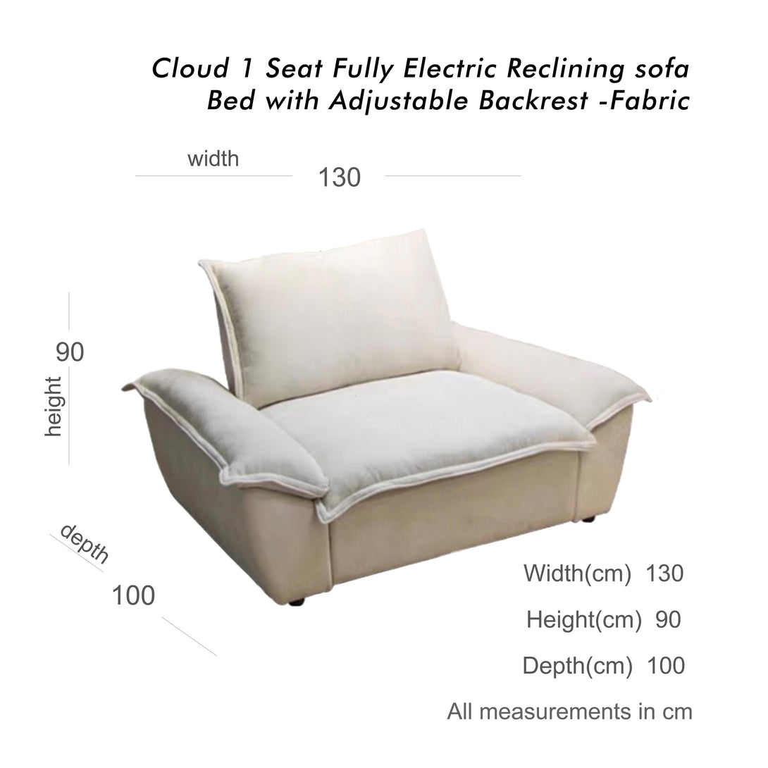 Cloud 1 Seat Fully Electric Reclining Sofa Bed with Adjustable Backrest - Fabric