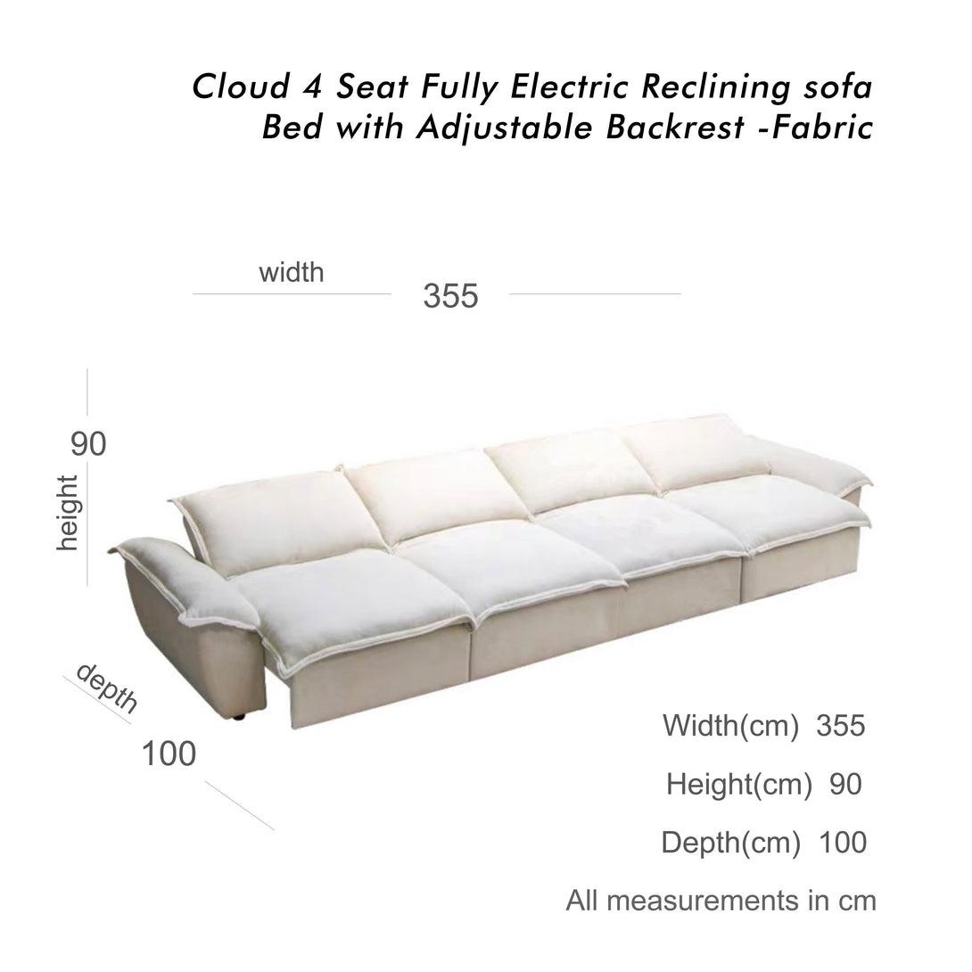 Cloud 4 Seat Fully Electric Reclining Sofa Bed with Adjustable Backrest - Fabric