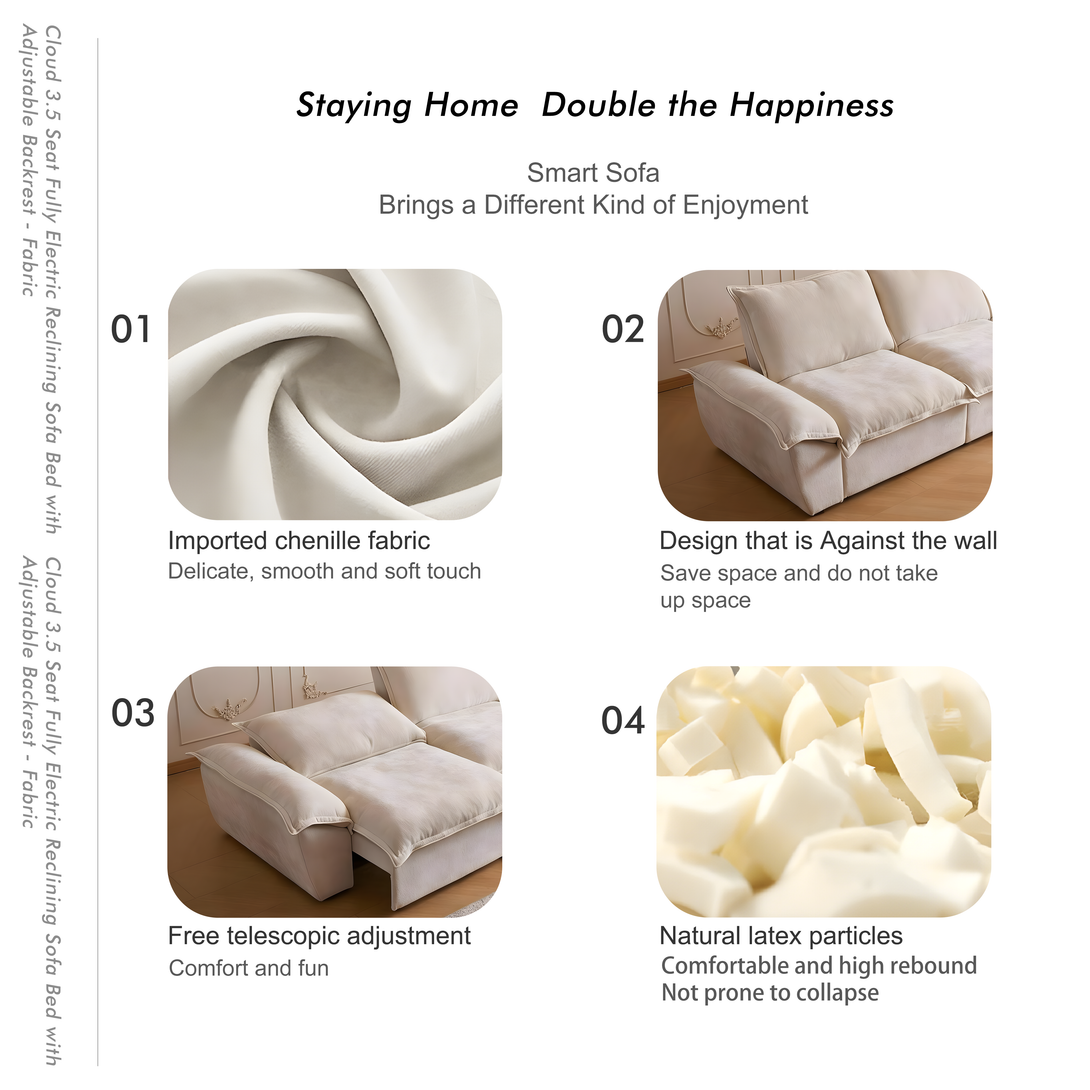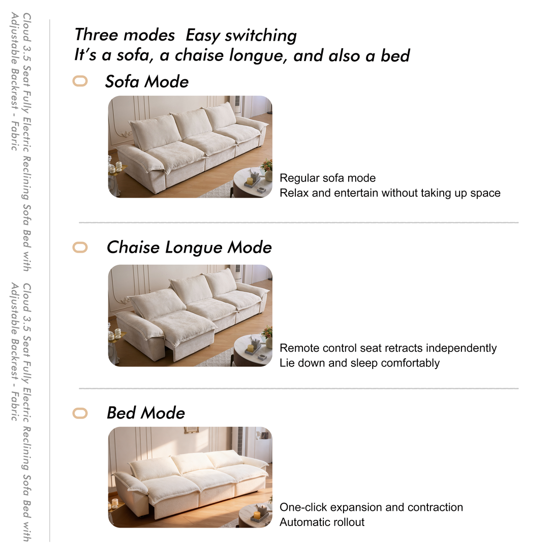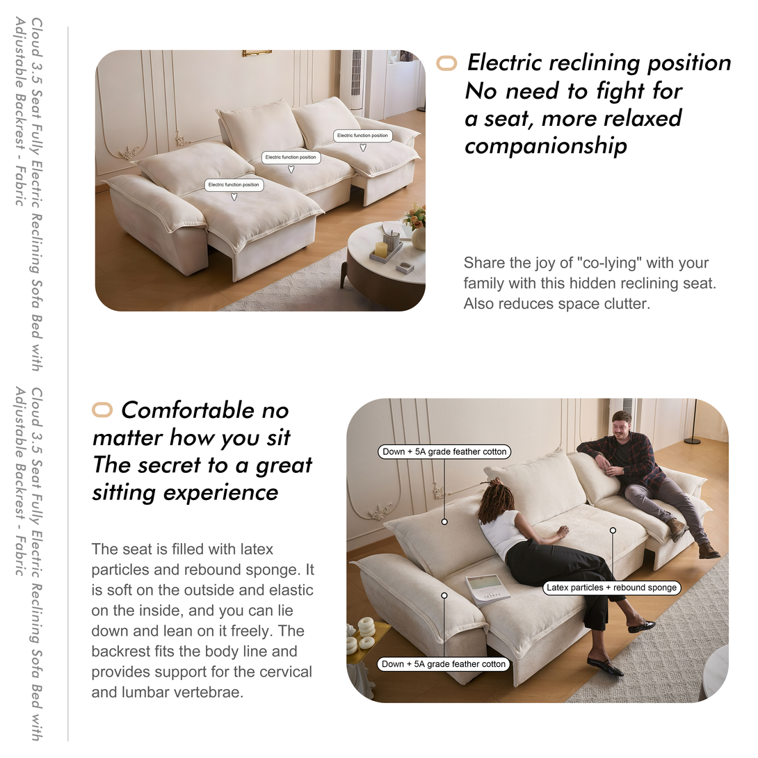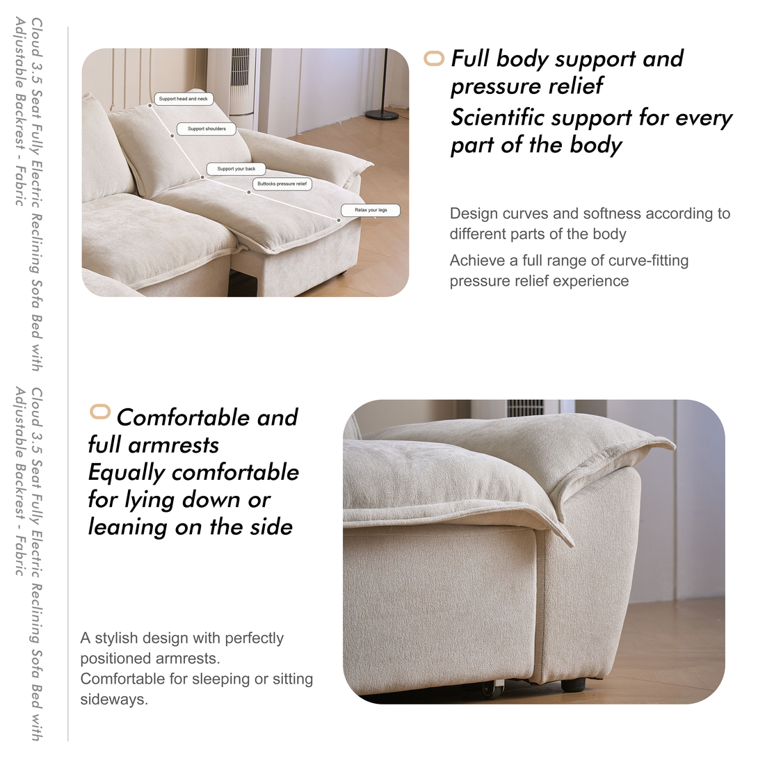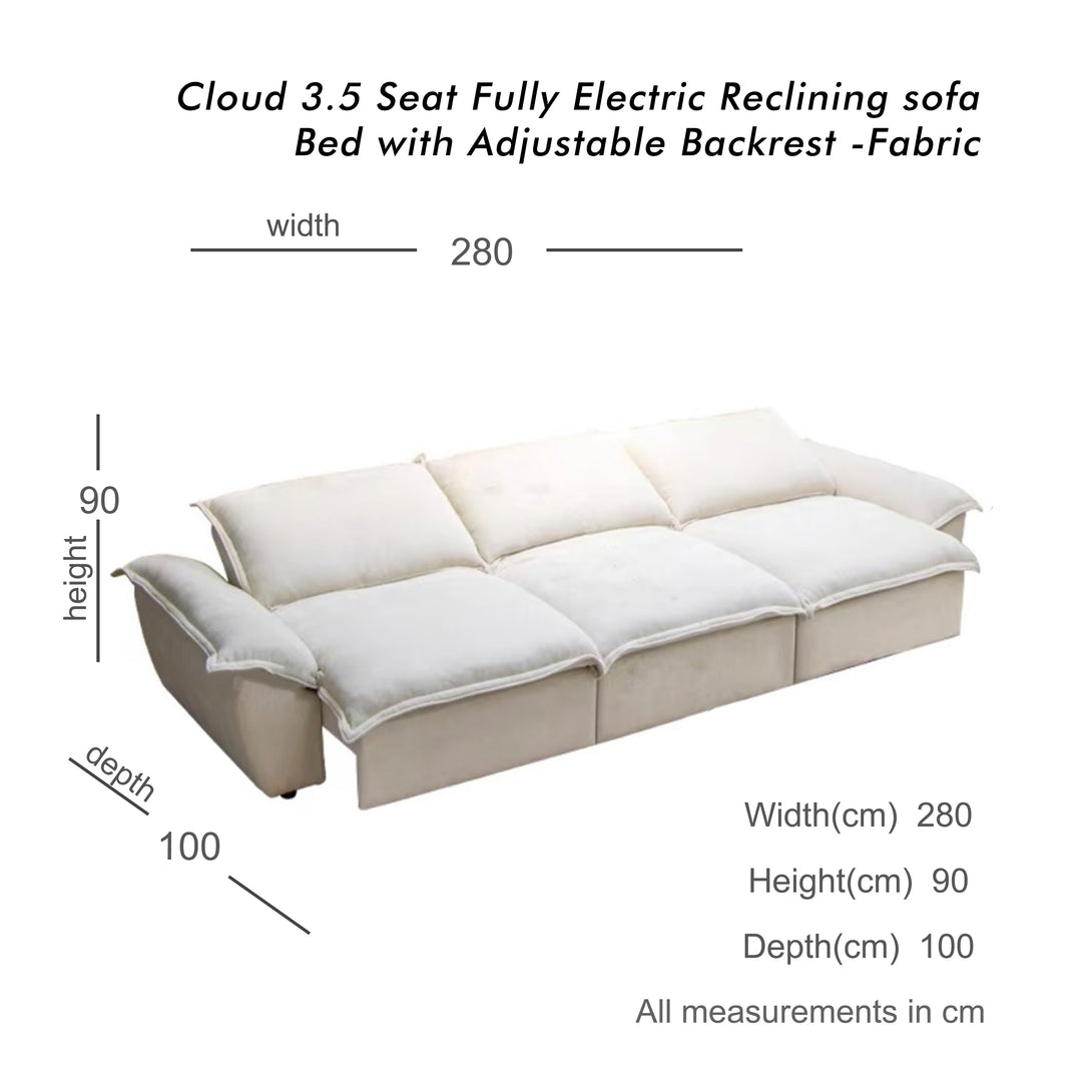 Cloud 3.5 Seat Fully Electric Reclining Sofa Bed with Adjustable Backrest - Fabric