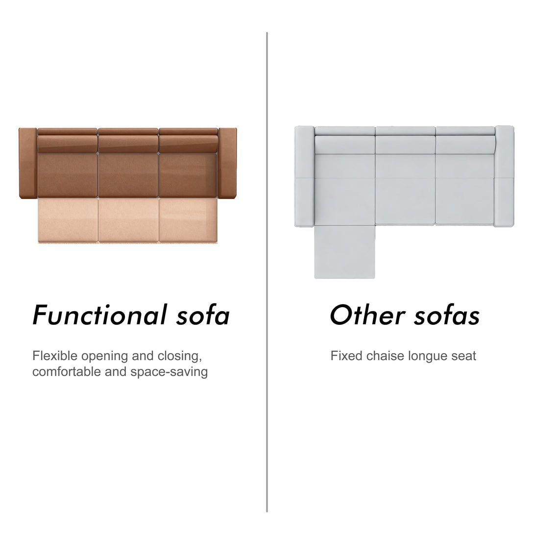 - 3-in-1 Functionality: Sofa, recliner, and bed in one modern design
