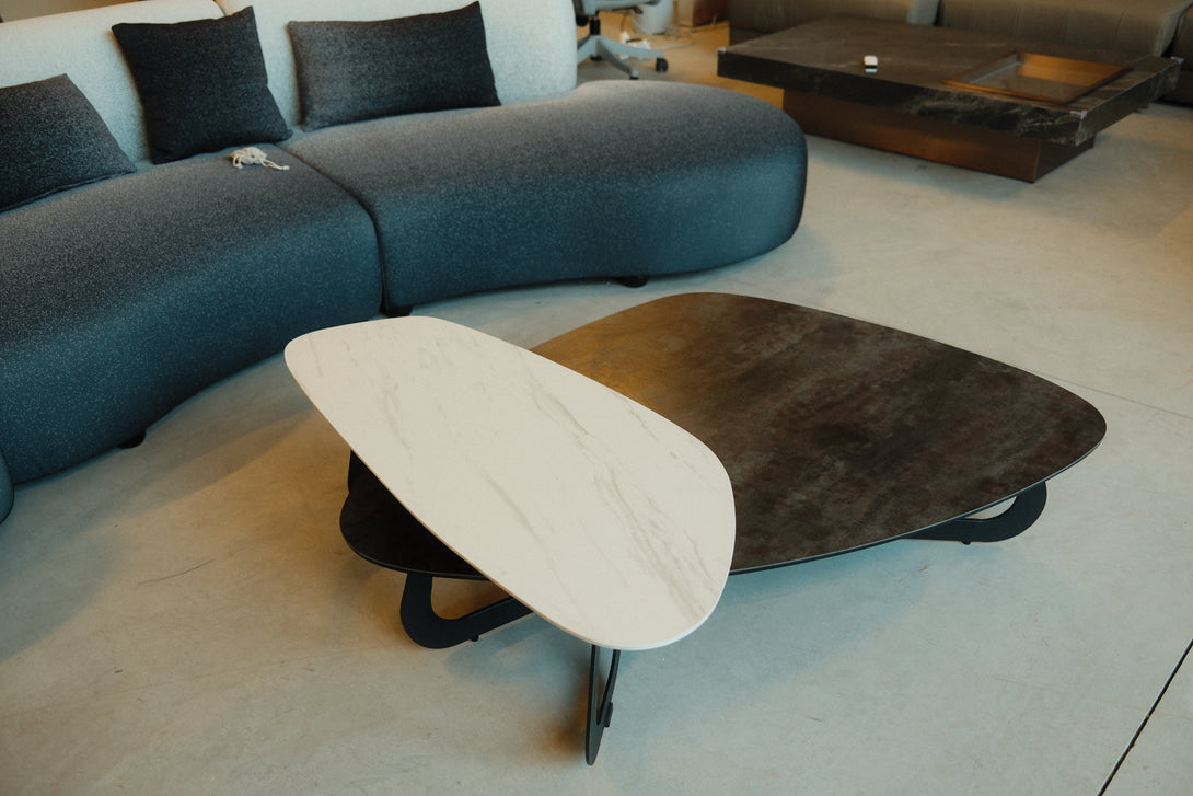 Contemporary Dual-Tone Nesting Coffee Table – Modern Marble & Bronze Finish