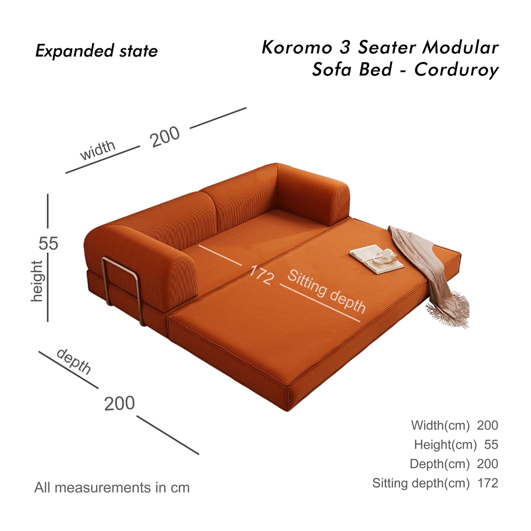Koromo 3 Seater Modular Sofa Bed - Corduroy