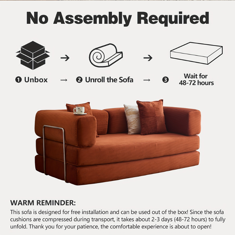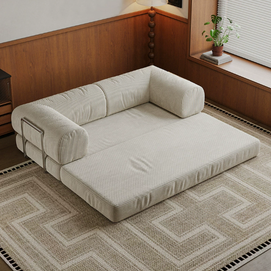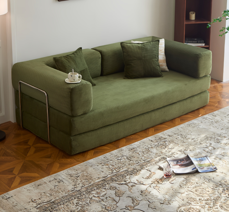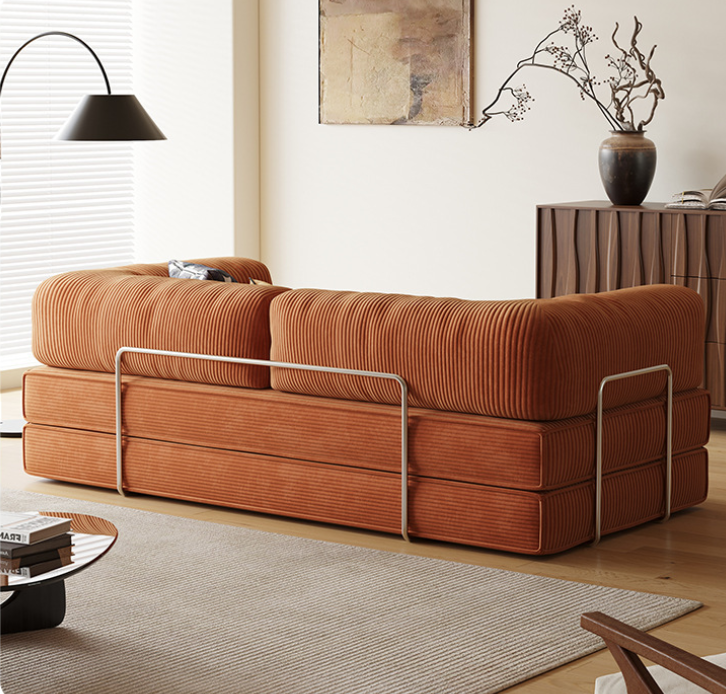 The Koromo 3 Seater Corduroy Modular Sofa Bed blends modern design with everyday practicality. Upholstered in soft polyester corduroy and filled with high-density foam, it offers superior comfort and durability. Supported by chrome-plated iron bars, this sofa bed ensures lasting stability and smooth transformation from a stylish sofa into a cozy bed — perfect for overnight guests or relaxed evenings at home.