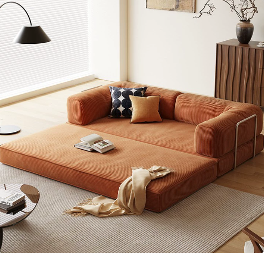 - 2-in-1 Functionality: Effortlessly converts from a modern sofa into a comfortable double bed