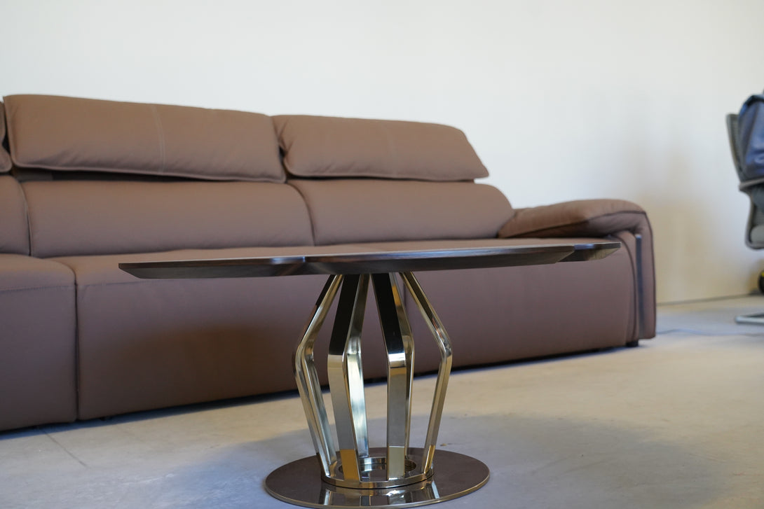 Inspired by the form of a blooming lotus, this sculptural coffee table features a uniquely petal-shaped walnut top that echoes the elegance of nature. Its base, crafted from mirror-polished titanium-coated stainless steel, rises like stamens from the center, giving the piece a refined yet powerful presence. The design seamlessly bridges Eastern aesthetics with contemporary luxury, making it ideal for upscale living rooms, lounges, and artful interiors.
