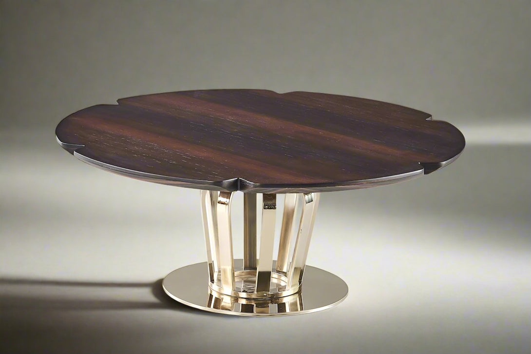 Product Description Inspired by the form of a blooming lotus, this sculptural coffee table features a uniquely petal-shaped walnut top that echoes the elegance of nature. Its base, crafted from mirror-polished...