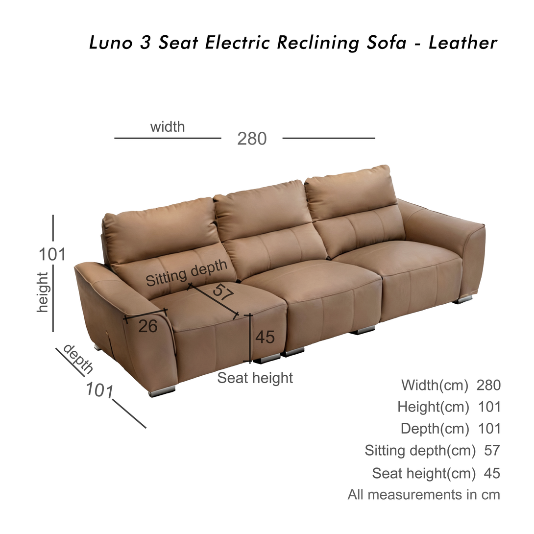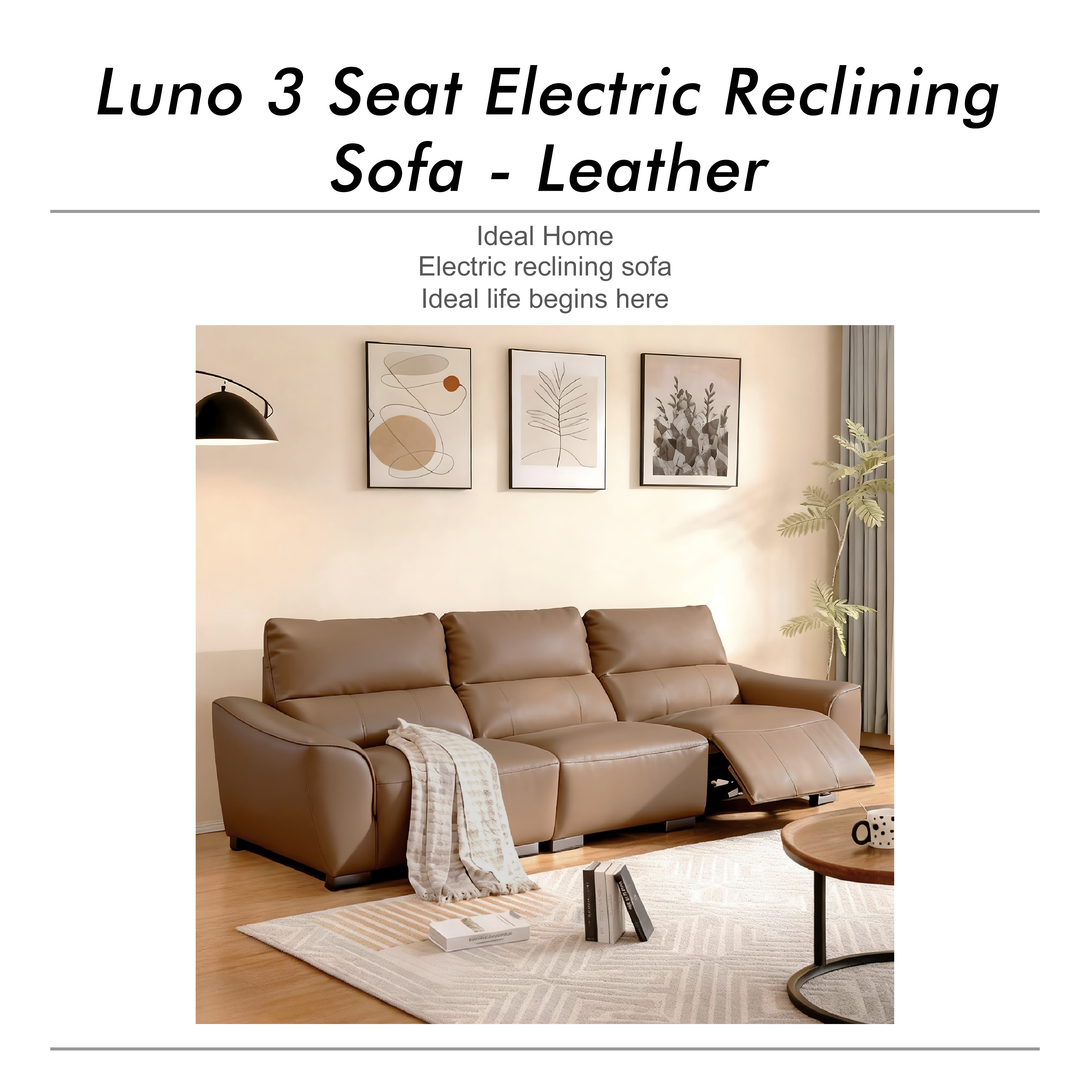Luno 3 Seat Electric Reclining Sofa - Leather
