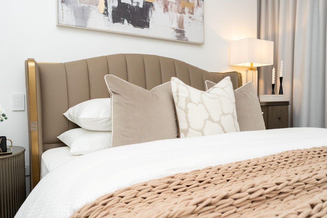 Luxe Arc Upholstered Bed with Gold Trim