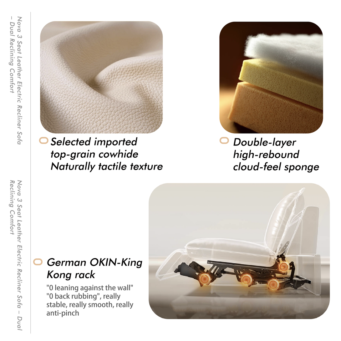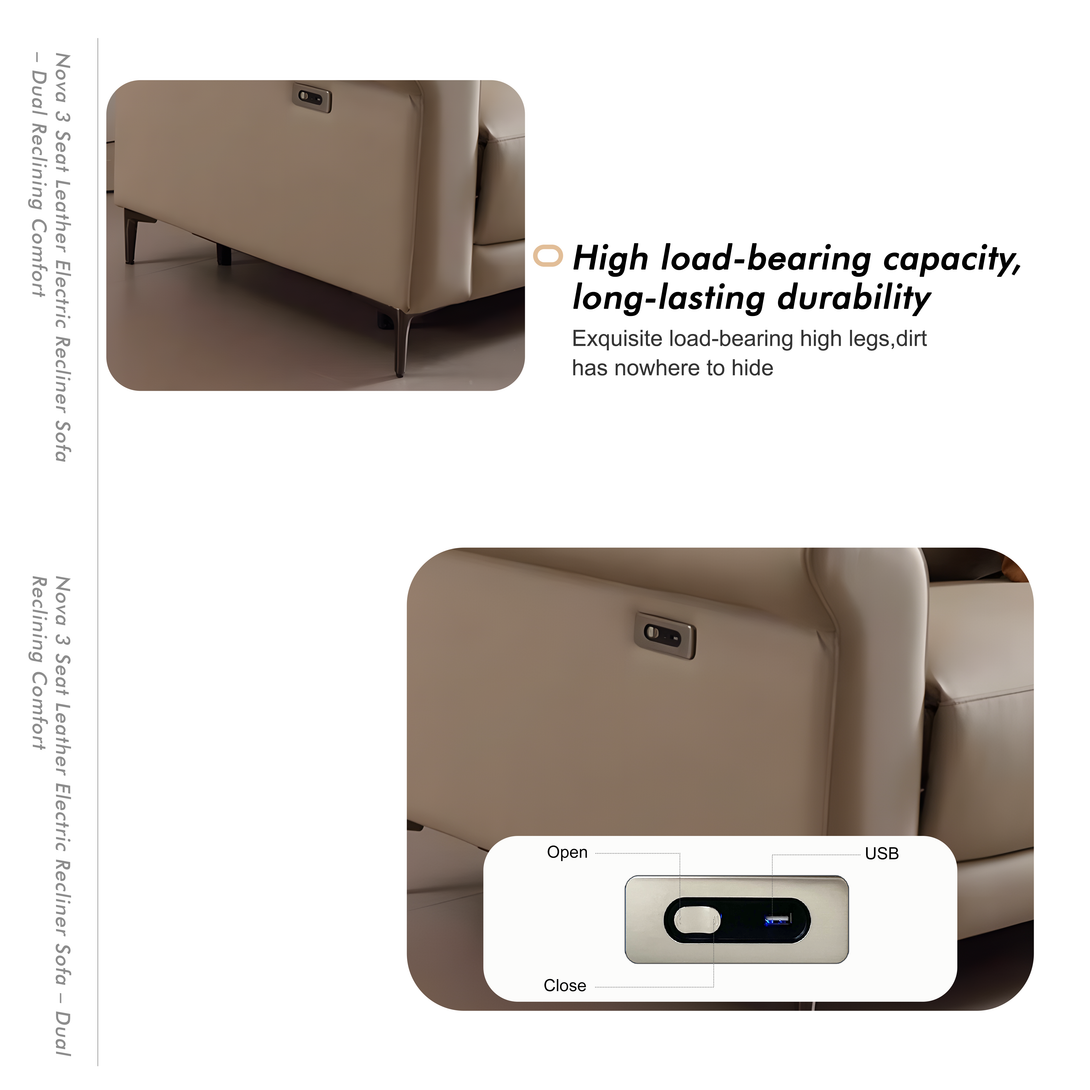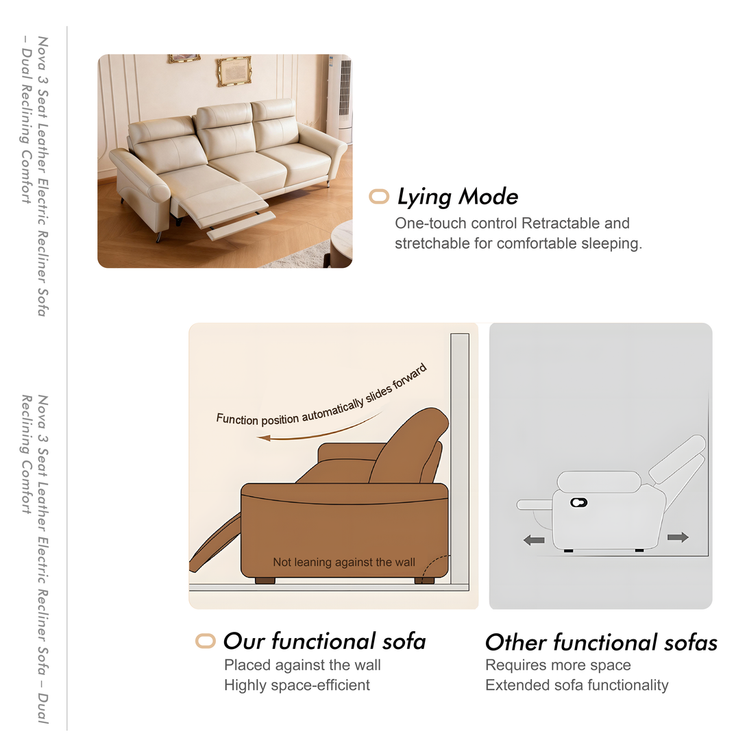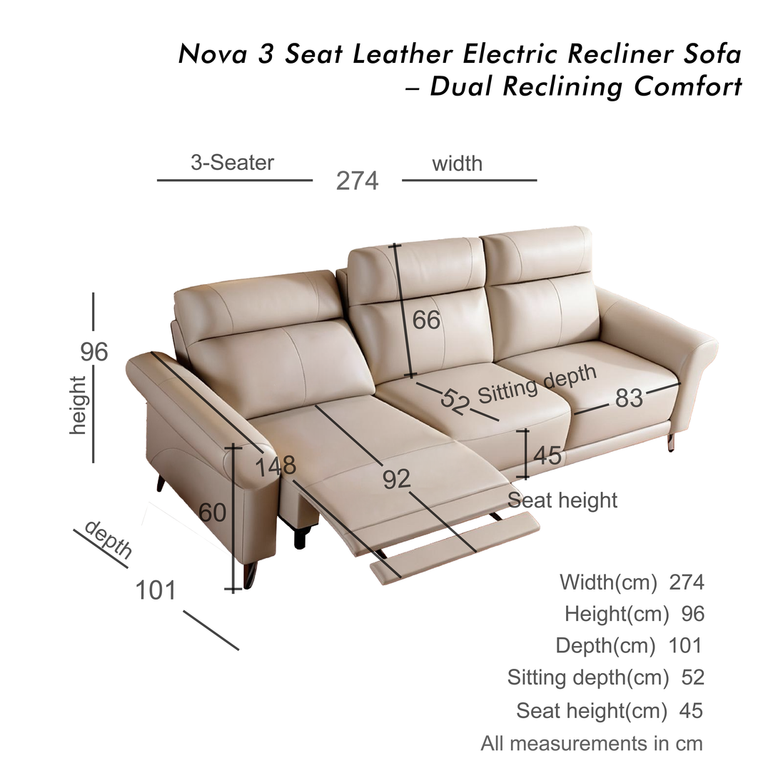 Nova 3 Seat Leather Electric Recliner Sofa – Dual Reclining Comfort