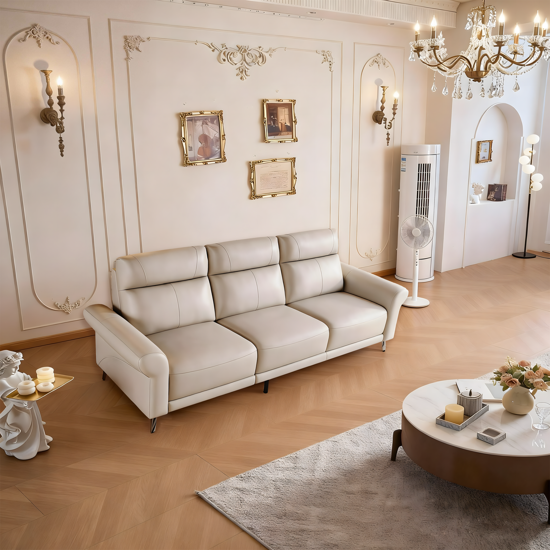 Bring refined elegance and everyday comfort to your living room with the Nova 3 Seat Leather Electric Recliner Sofa. Upholstered in supple genuine cowhide leather with a soft grey finish, Nova blends modern minimalism with advanced functionality, making it the perfect companion for family lounging and stylish entertaining.