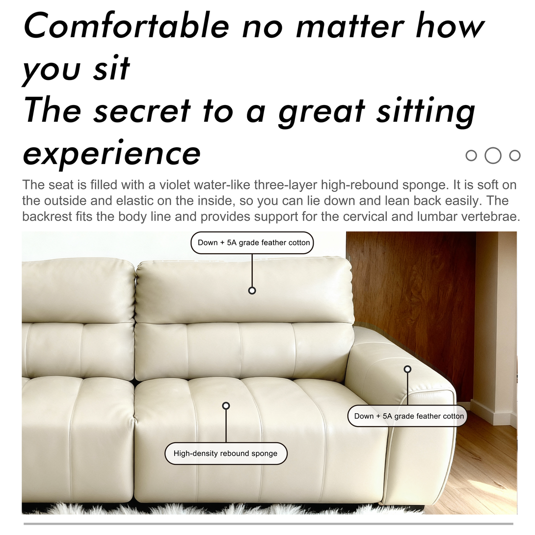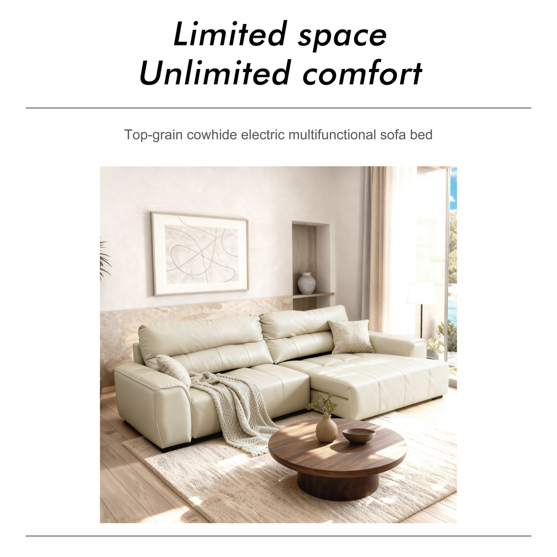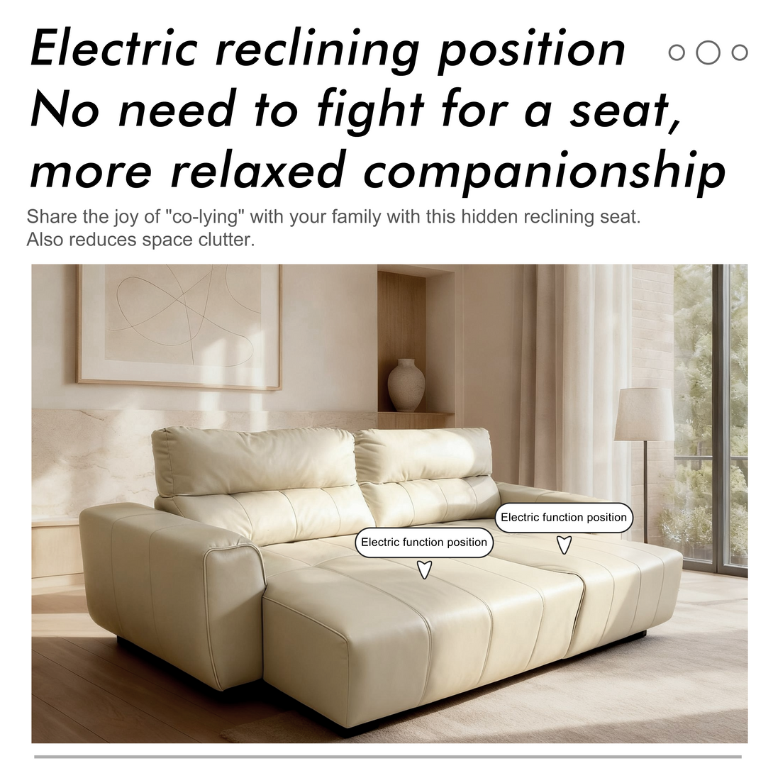Bring modern innovation and comfort into your home with the Oasis Fully Electric Reclining Sofa Bed. Designed for ultimate relaxation, this modular lounge combines genuine cowhide leather with cutting-edge technology, offering the perfect blend of elegance and functionality.