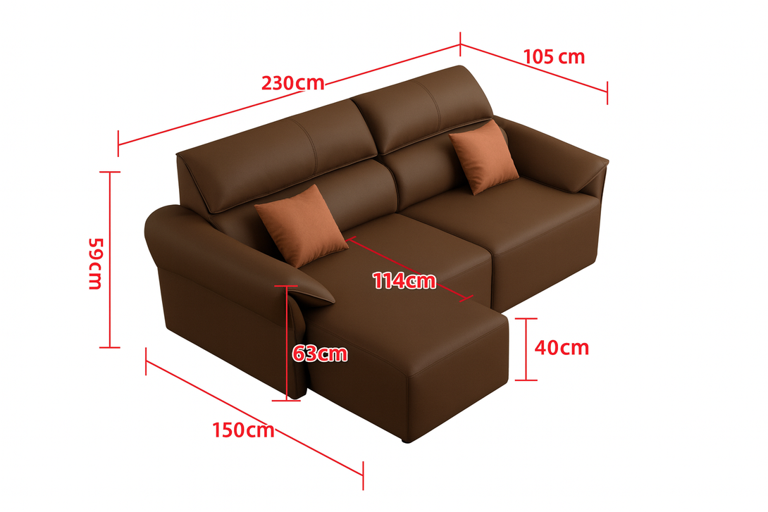 Dimensions (W × D × H): 230 x (Standard Depth 105+40 Extension) x 95 cm