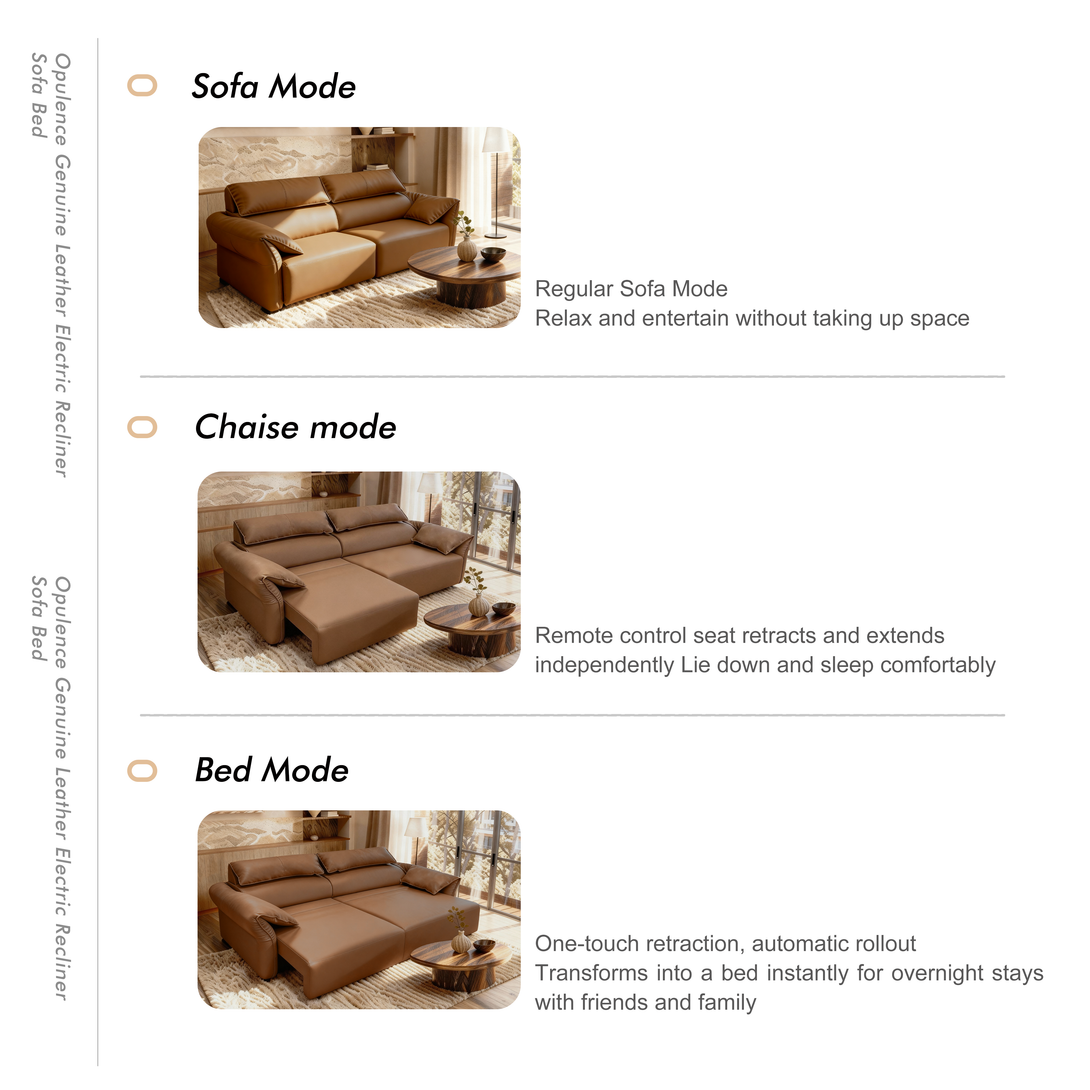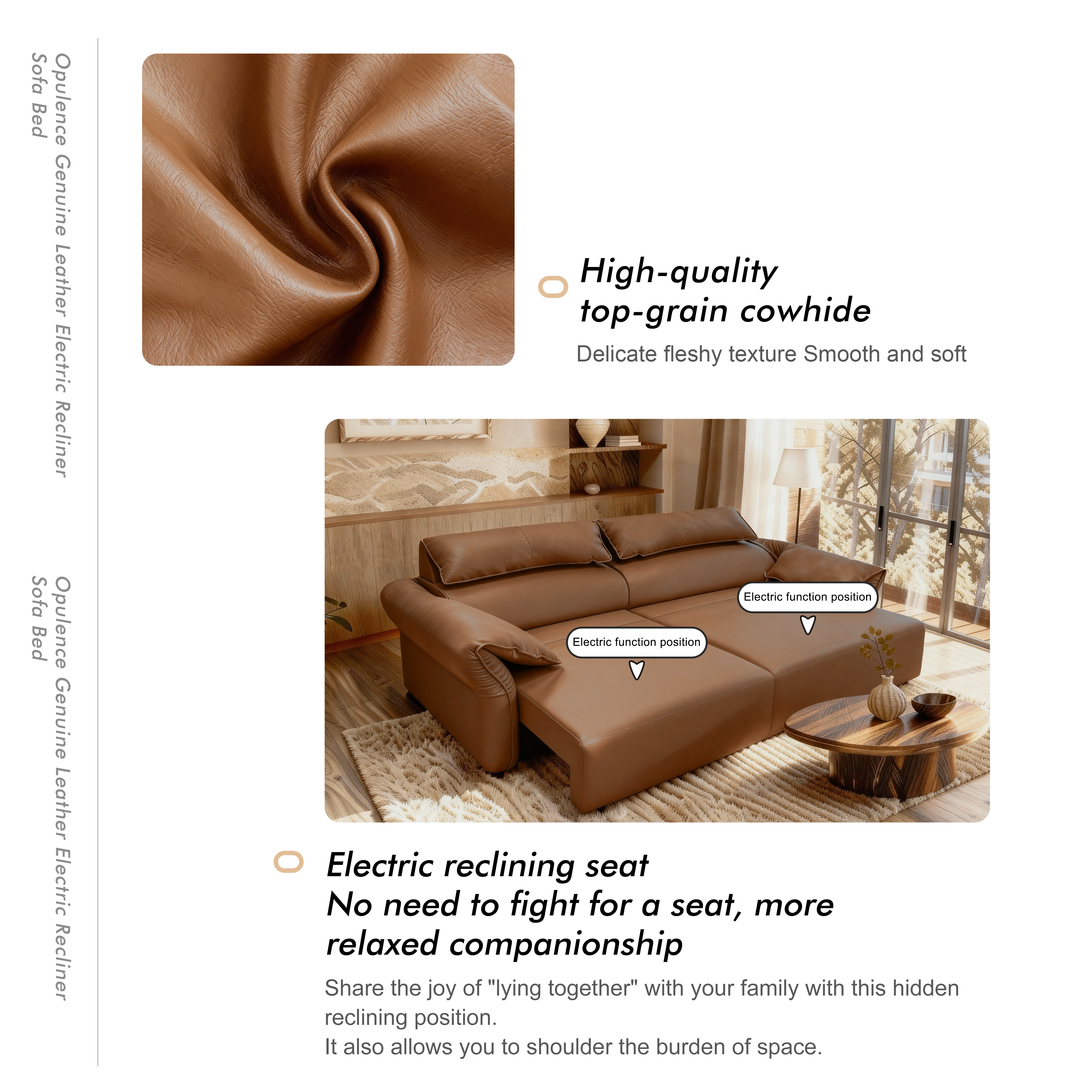Experience everyday luxury with the Opulence Genuine Leather Electric Recliner Sofa Bed, designed for modern Australian homes. Upholstered in premium cowhide leather, this elegant modular sofa combines style, comfort, and practicality in one.