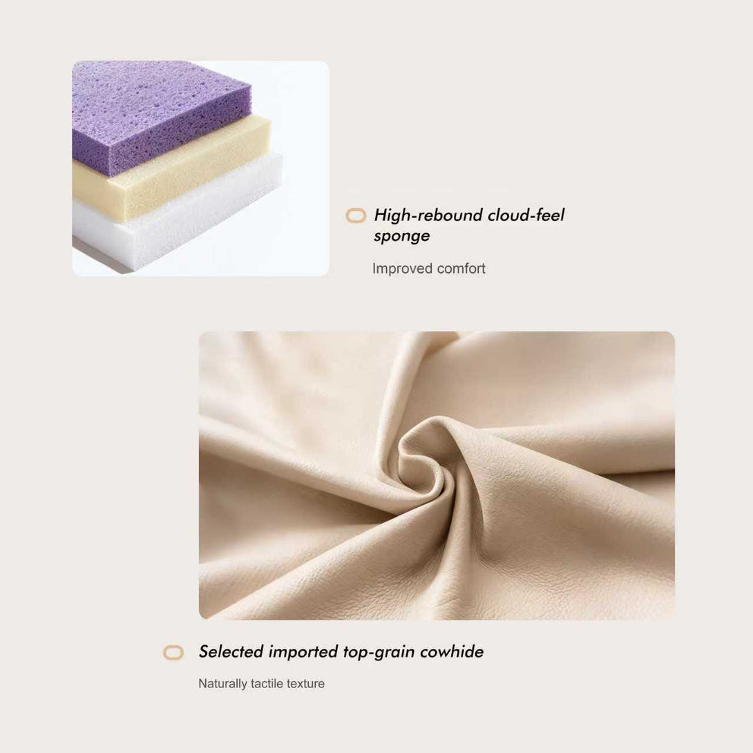 - 100% genuine cowhide leather upholstery