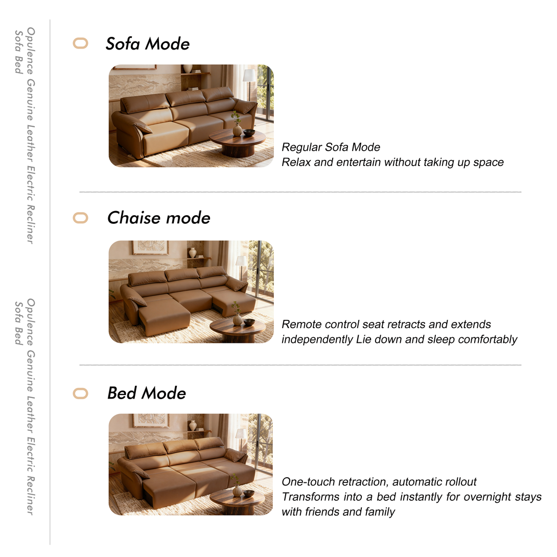 Experience everyday luxury with the Opulence Genuine Leather Electric Recliner Sofa Bed, designed for modern Australian homes. Upholstered in premium cowhide leather, this elegant modular sofa combines style, comfort, and practicality in one.